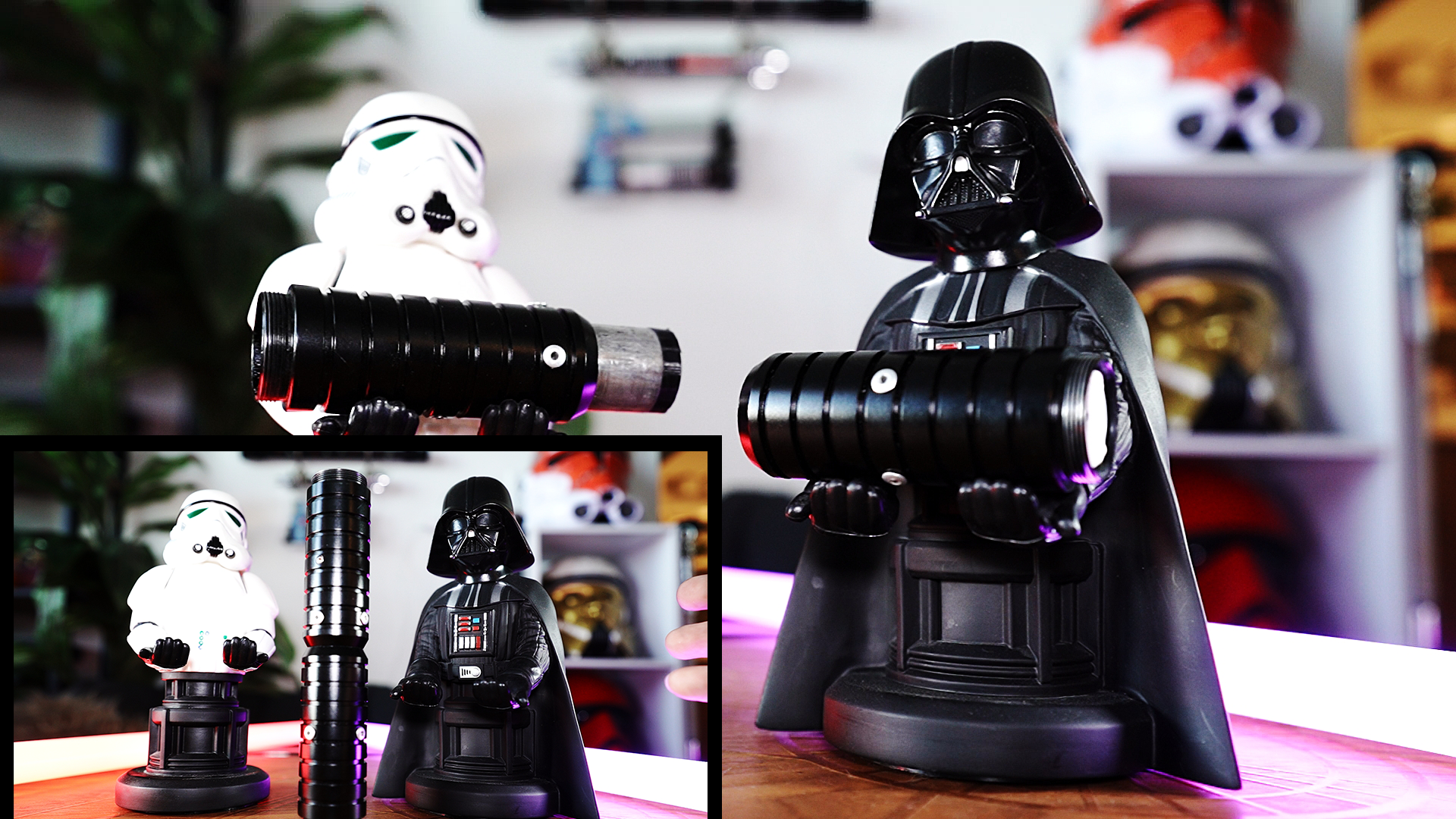 -Turns two sabers into a saberstaff using a magnetic coupler. Snap on, snap off, LET’S GO.